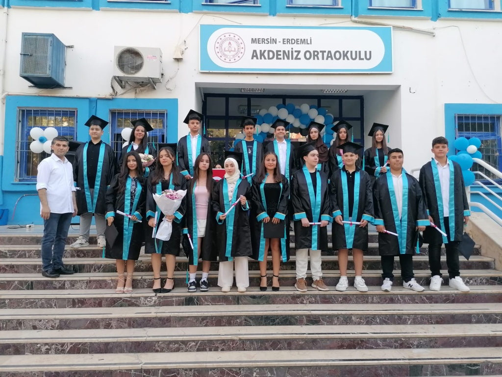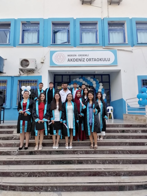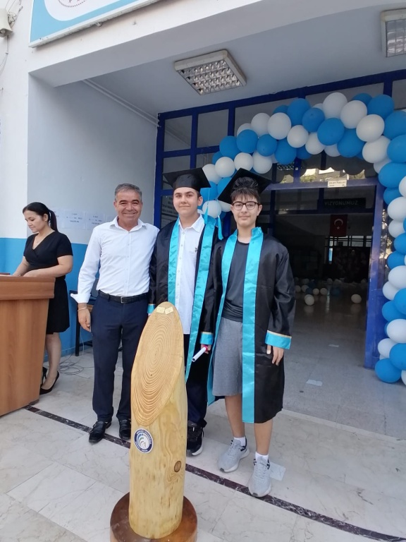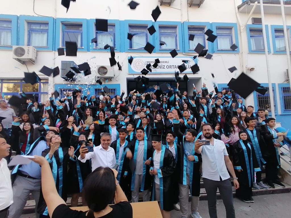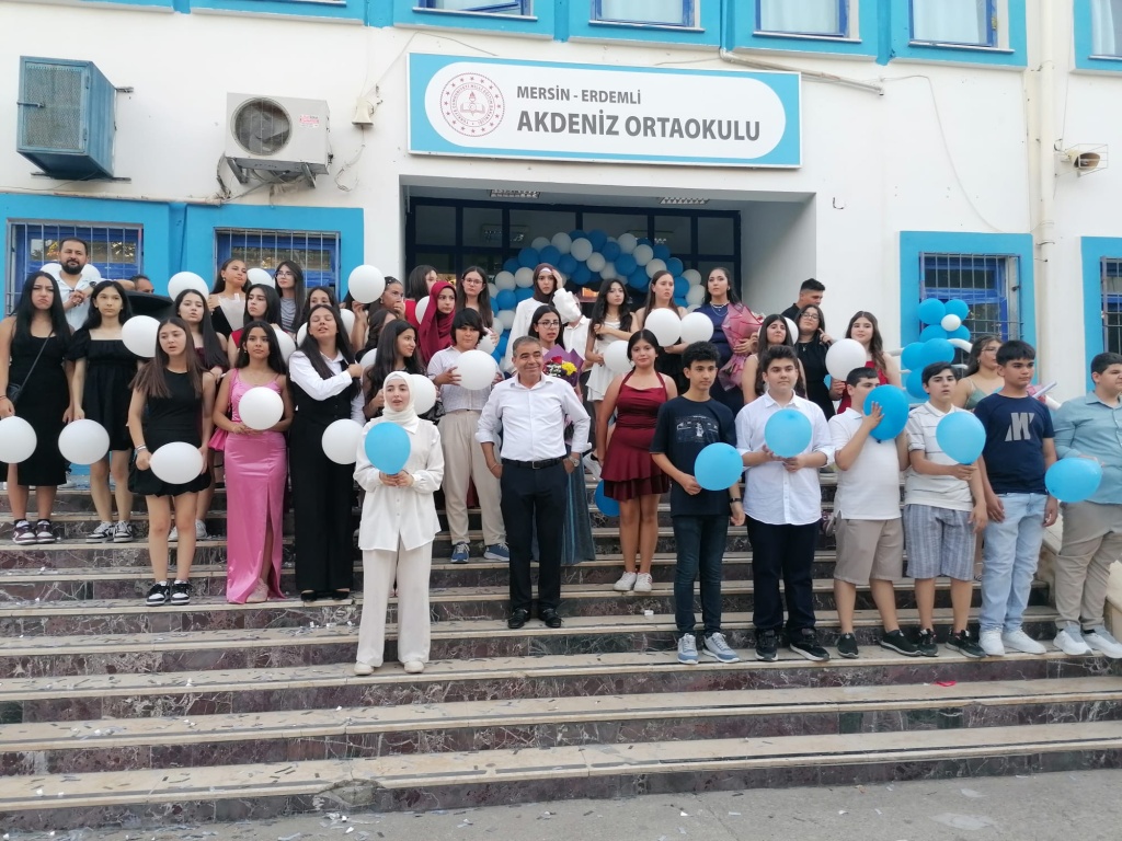 2024-2025 Eğitim Öğretim yılı sonu 8.sınıf öğrenilerimize okulumuz bahçesinde yıl sonu mezuniyet proğramı hazırlandı. Öğrencilerşmiz arasında dereceye girenlere ödüller verildi. Okul müdürümüz Mehmet ŞAHİN eşliğinde pasta kesimi gerçekleşti. Kep atma töreninden sonra öğrenci, öğretmen, idare ve velilerle birlikte coşku ile eğlendik.