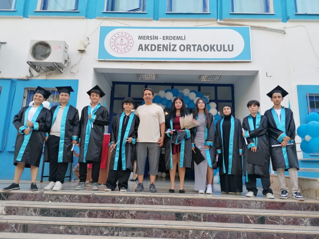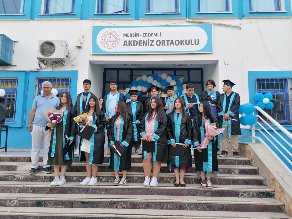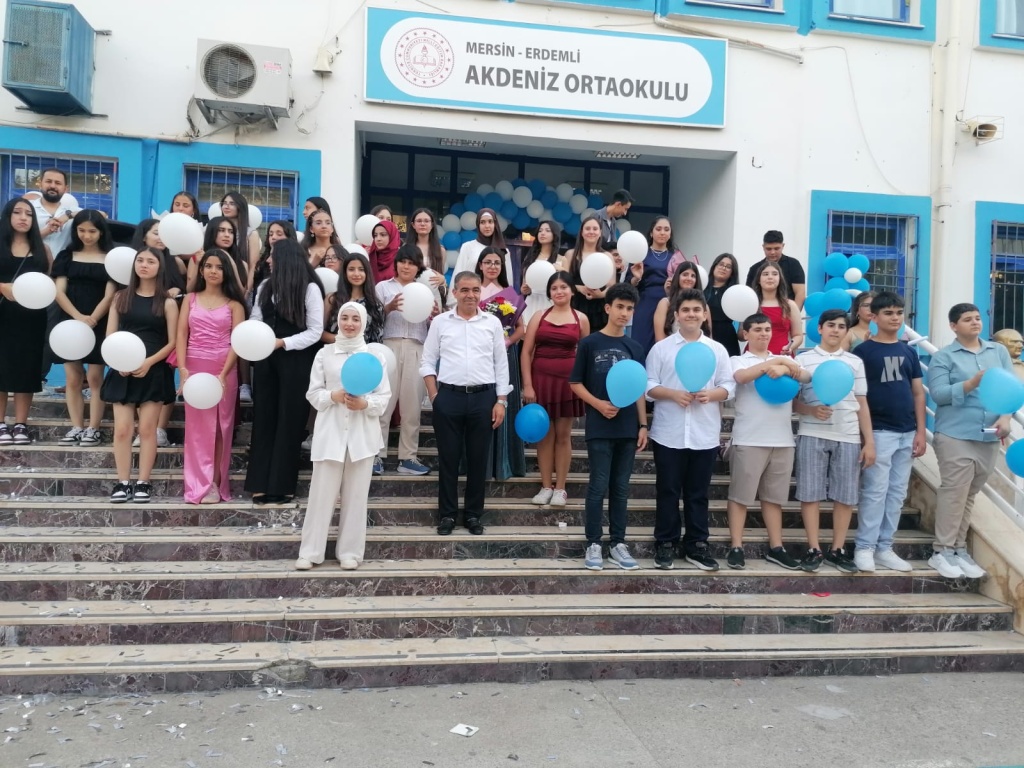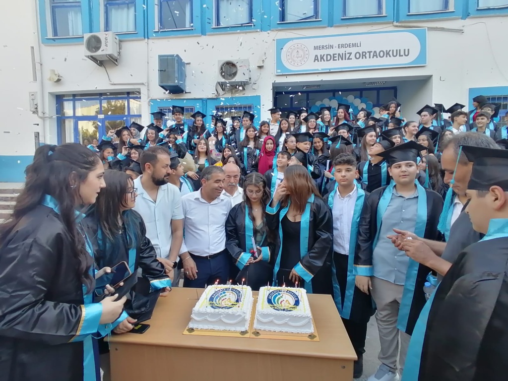2024-2025 Eğitim Öğretim yılı sonu 8.sınıf öğrenilerimize okulumuz bahçesinde yıl sonu mezuniyet proğramı hazırlandı. Öğrencilerşmiz arasında dereceye girenlere ödüller verildi. Okul müdürümüz Mehmet ŞAHİN eşliğinde pasta kesimi gerçekleşti. Kep atma töreninden sonra öğrenci, öğretmen, idare ve velilerle birlikte coşku ile eğlendik.